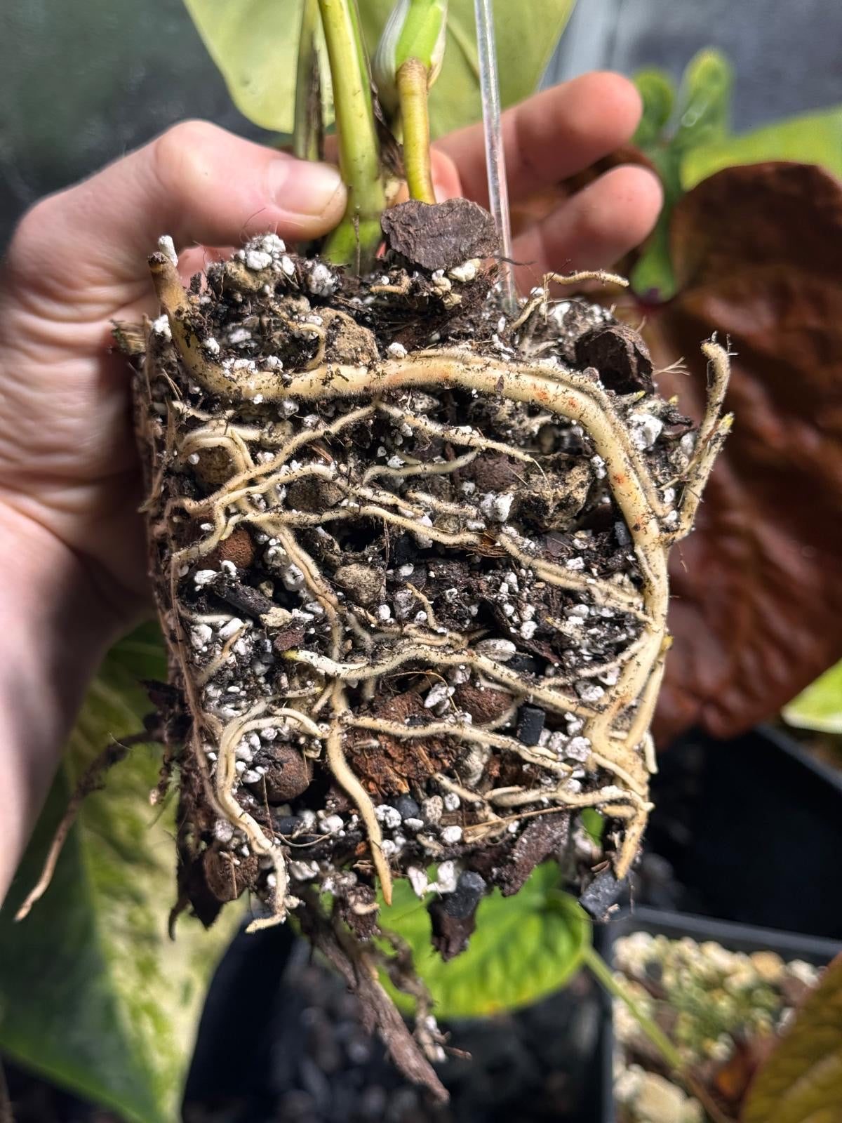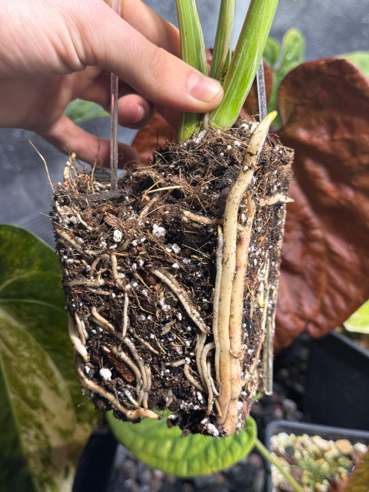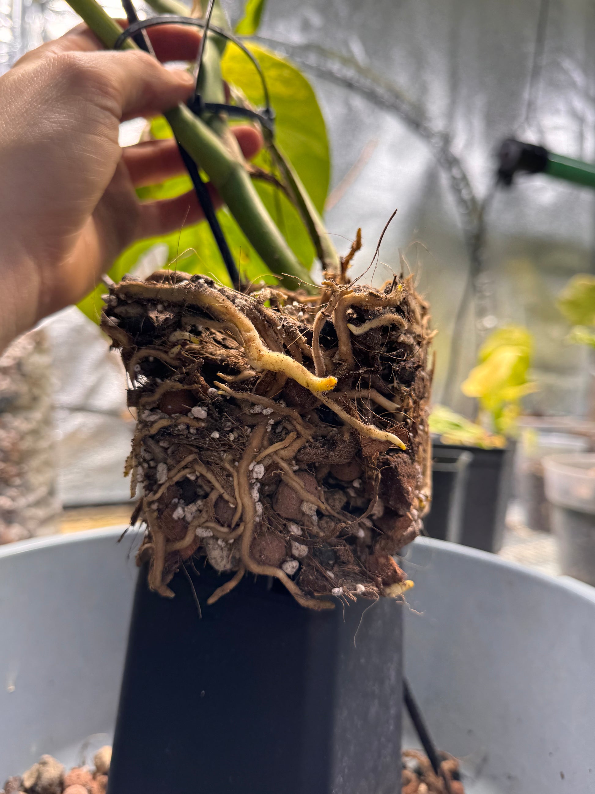 - Des racines qui poussent la plante vers le haut et hors du pot